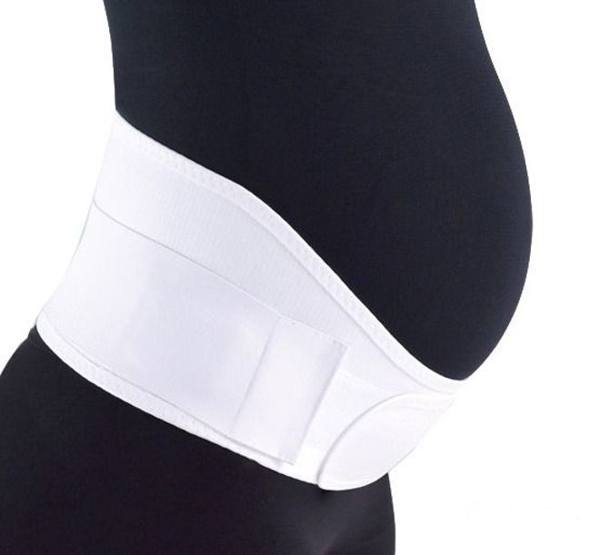 Бандаж для беременных и женщин в послеродовом периоде, с разъемной эластичной основой анатомической формы и парой эластичных ремней, фиксированных к центральной части изделия. Высота ортеза: 15-20 см в зависимости от размера. По краям основы и на концах ремней расположена застежка «Велкро».