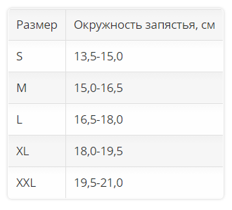 Размеры: Для определения размера нужно измерить окружность лучезапястного сустава, см. Правый/Левый