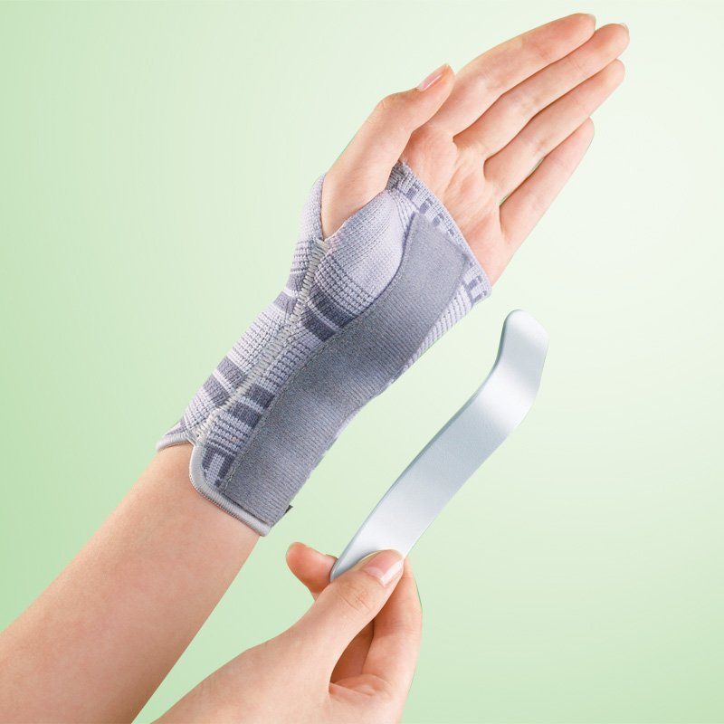 • Контурная шина (при необходимости снимается) обеспечивает надежную поддержку для стабилизации запястного сустава в положении покоя, не ограничивая подвижность пальцев.