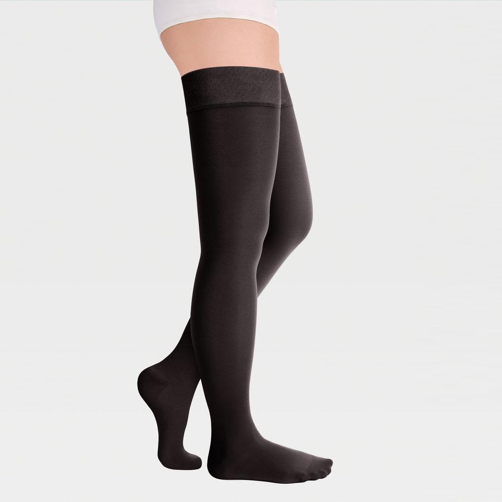 • резинка на силиконовой основе, в том числе на широкое бедро, мягко фиксирует чулок , не нарушая кровотока