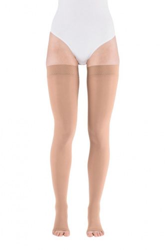 Комфортные компрессионные чулки 1-ого класса компрессии mediven comfort с открытым носком и силиконовой резинкой для лечения заболеваний вен.