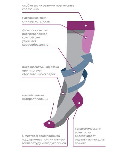 Мягкие, удобные, стильные гольфы с высоким содержанием хлопка I класса компресии (15-21 мм рт.ст.) подойдут под любой стиль одежды. Основные компоненты полотна натуральный хлопок и микрофибра обеспечивают мягкость и экологичность изделий. Микрофибра делает гольфы шелковистыми и эластичными.Такое сочетание материалов , а также «мужская» вязка полотна в рубчик - это комфорт, удобство и эстетичный внешний вид.