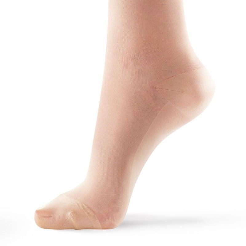 Компрессионный трикотаж создает эластичный каркас, препятствующий застою венозной крови, сохраняя необходимые условия для нормального функционирования вен, и предотвращает развитие отеков. Одним из необходимых условий возврата венозной крови является наличие перепада давления, распределение давления с уменьшением компрессии от лодыжки к бедру: I класс компрессии – 18-22 мм рт. ст., II класс компрессии – 23-32 мм рт. ст.