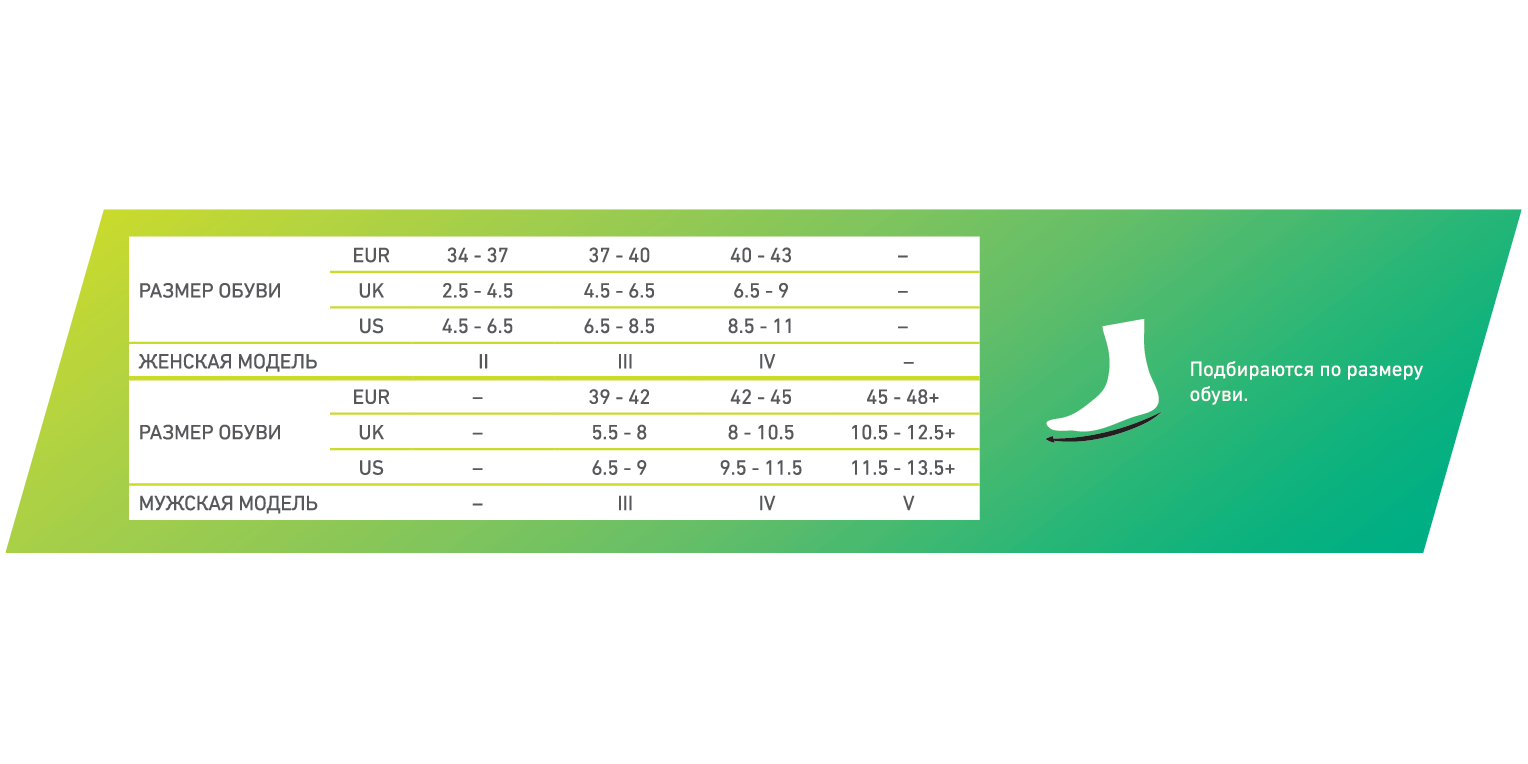 - Компрессия в области среднего отдела стопы обеспечивает дополнительную стабилизацию свода стопы
