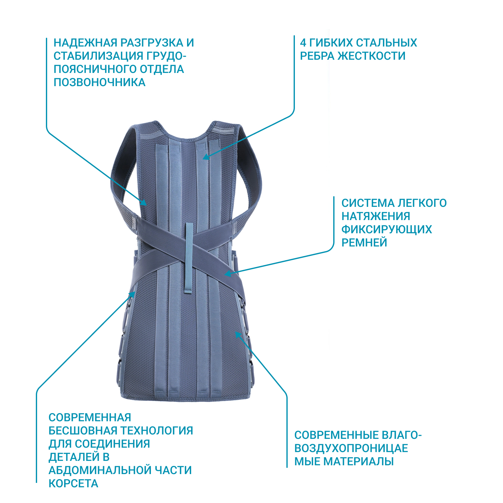 • Надежная разгрузка и стабилизация грудо-поясничного отдела позвоночника.