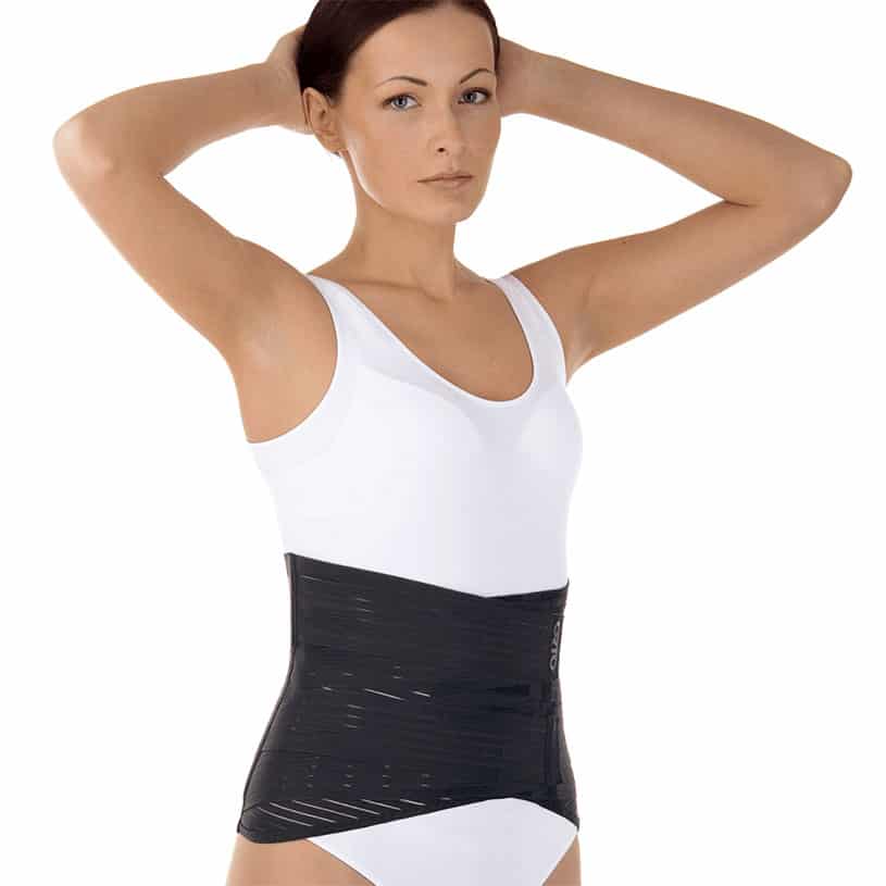 Это достигается благодаря двум составляющим: основе, выполненной из эластичного полотна с особой разреженной вязкой, а также фиксирующим элементам, имеющим инновационную раздельную (дискретную) конструкцию, что позволяет сделать переднюю часть растяжимой. Основа усилена четырьмя моделируемыми ребрами жесткости (два центральных ребра, расположенных вдоль позвоночника и два боковых косо расположенных ребра) и двумя крестообразными эластичными стяжками. Переднебоковая часть корсета имеет выраженный анатомический вырез, оснащена двумя парами сдвоенных боковых стяжек, обеспечивающих более плотное прилегание изделия, а также усилена гибкими металлическими планшетками для предотвращения скручивания. Фиксация корсета осуществляется с помощью застежки «Велкро».
