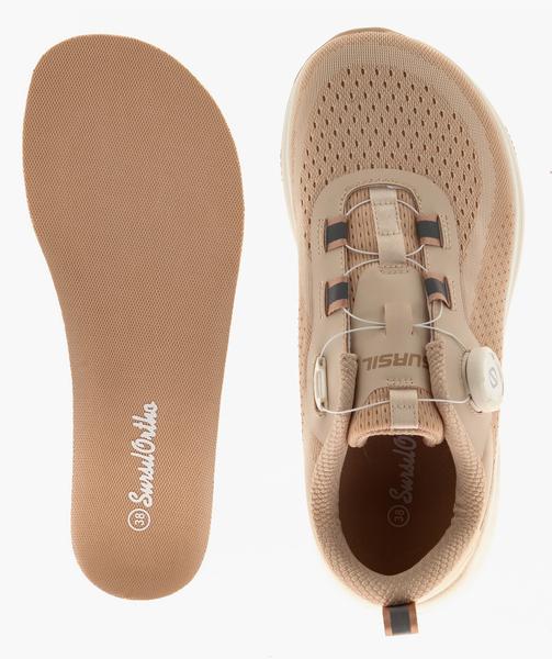 Такая форма обеспечивает максимальную свободу для пальцев и всего переднего отдела стопы. Модель подойдет в случае деформаций переднего отдела стопы, например, Hallux valgus, молоткообразные пальцы и т.п. Формоустойчивый задник фиксирует пятку, предохраняя стопу от завала. Вкладная анатомическая стелька поддерживает своды стопы, не ограничивая естественного движения. Верх обуви выполнен из дышащего текстиля. Модель имеет текстильную подкладку и мягкий кант для профилактики натирания. Легкая амортизирующая подошва ЭВА имеет удобный физиологичный подъем в области пятки, отлично поглощает и распределяет нагрузку на стопы и суставы. В кроссовках применена инновационная шнуровочная система с клипсом, что очень удобно для быстрой и корректной фиксации обуви на ноге.
