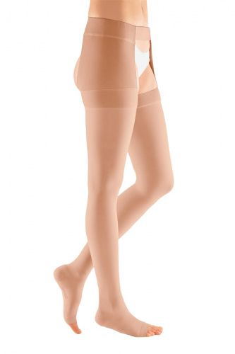 Компрессионный чулок 2 класса компрессии mediven plus с открытым носком и застёжкой на талии как универсальное решение в лечении заболеваний вен.