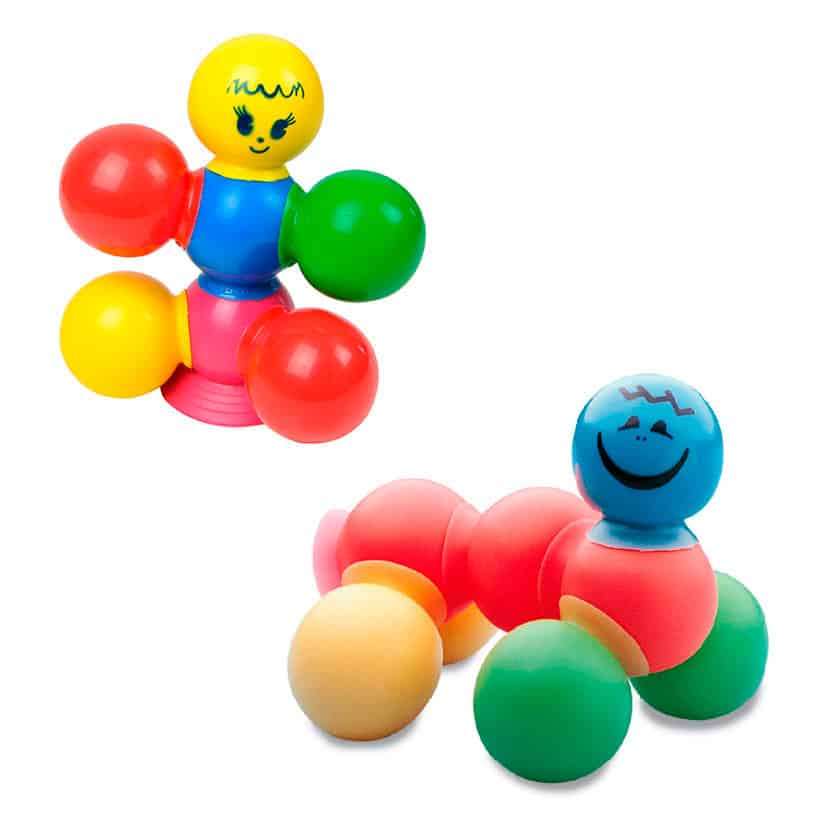 Развивают воображение и моторику пальцев. Из этого набора маленьких разноцветных мячей можно легко сконструировать забавного зверька.