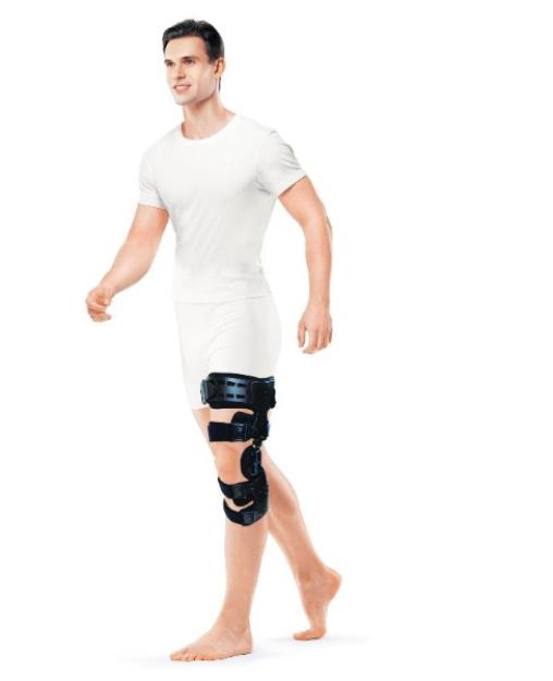 Ортез разгружает и снижает боль в мыщелке коленного сустава благодаря возможности однонаправленно воздействовать на ось коленного сустава. Варус-вальгусную регулировку можно осуществлять в пределах 30 градусов. Ограничение диапазона движения в коленном суставе можно осуществлять в пределах: разгибание – 0°, 10°, 20°, 30°, 40°; сгибание – 0°, 10°, 20°, 30°, 45°, 60°, 75°, 90°; иммобилизация – 0°, 10°, 20°,30°. Защищает от переразгибания и чрезмерного сгибания в суставе.