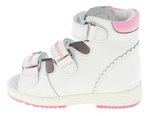 Наличие этих опорных точек верно формирует стопу и дает возможность развиваться ножкам детей без каких-либо дефектов. Орто-обувь назначается врачом, ее рекомендовано носить с раннего детства. Не стоит забывать использование орто-стельки вкладного типа. Можно применять готовую стельку, либо сделать ее индивидуально. Наличие 3-х застежек-липучек "велькро" отлично работает с открытым носом, когда пальцы остаются свободными. Такая обувь имеет увеличенную полноту и полную раскрываемость.